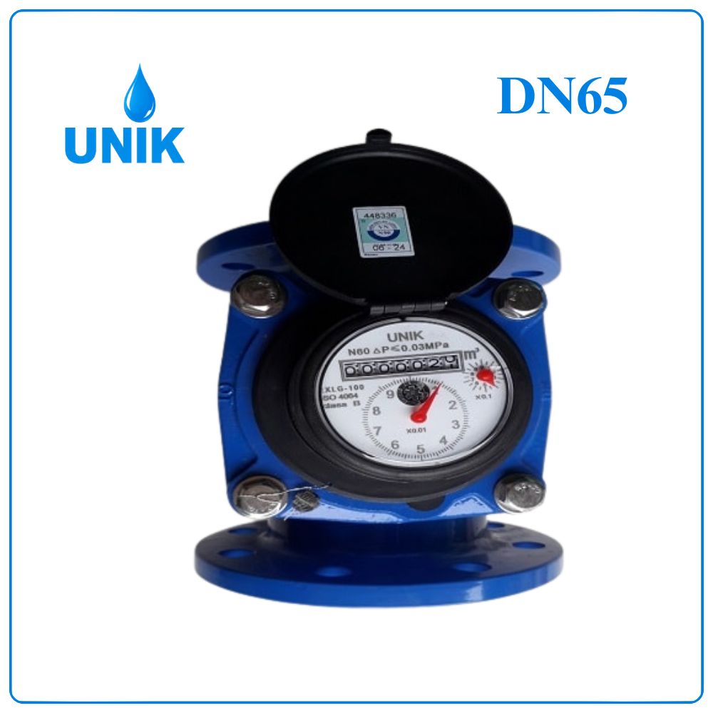 Đồng hồ nước sạch UNIK DN65 là thiết bị đo lưu lượng nước sạch sử dụng cho hệ thống đường ống DN65 (2 1/2 inch ~ phi 73mm). Đây là dòng đồng hồ cơ dạng tuabin, truyền động từ, chuyên dùng cho hệ thống cấp nước có lưu lượng lớn như tòa nhà, nhà máy và khu công nghiệp.
